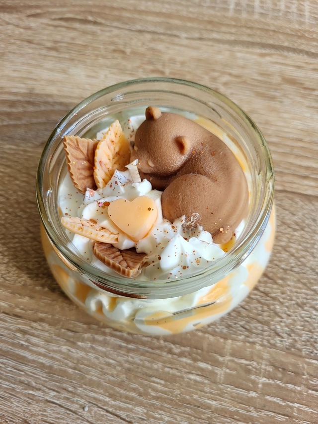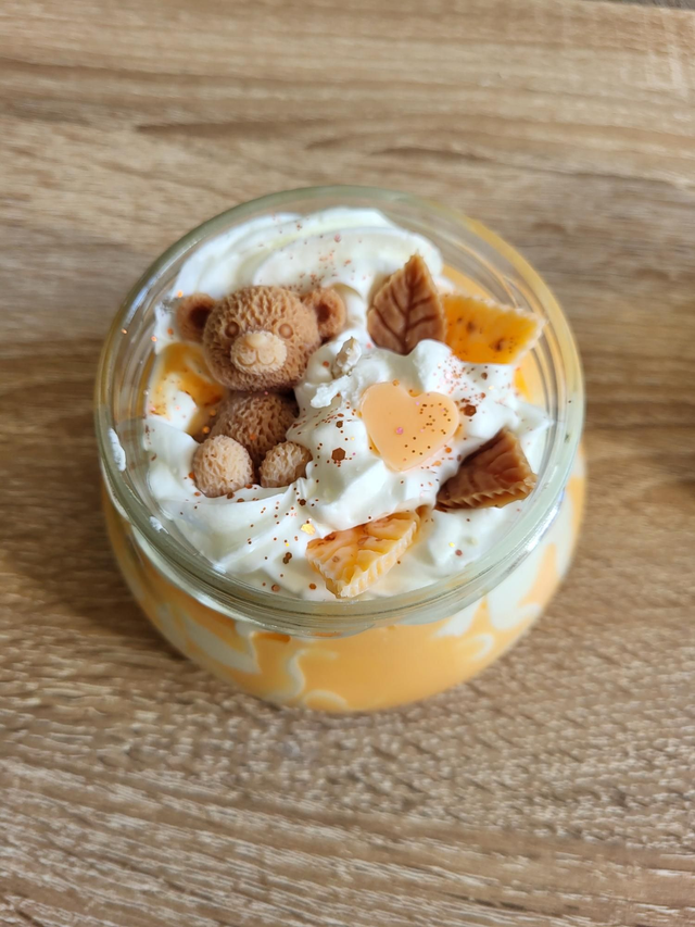 Craquez pour cette bougie en cire de soja naturelle, coulée à la main et parfumée à la fleur d’oranger. Son design unique, avec un petit ourson et des détails faits à la main, en fait une pièce aussi douce que raffinée.