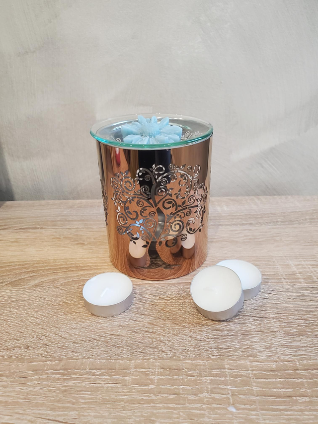 Apportez une touche de raffinement et de sérénité à votre intérieur avec ce brûleur métallique au design inspiré de l'arbredevie. Son motif délicatement ajouré laisse passer la lumière, créant une ambiance apaisante tout en diffusant subtilement vos senteurs préférées.